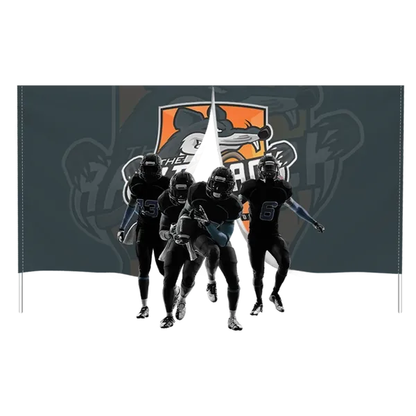 Breakaway banners usually come with poles that are inserted into pole pockets located on each side and are usually held by two people during the running-through process. These banners are most commonly used for pep rallies and team sporting events such as football, basketball, and field hockey games.