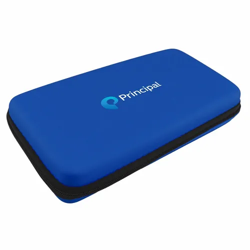 A professional tech kit gift for dynamic business teams that need to be prepared when traveling. Comes with a charging cable, 5000 mAh Power Bank with Wireless Charging, and a large zipper case.
