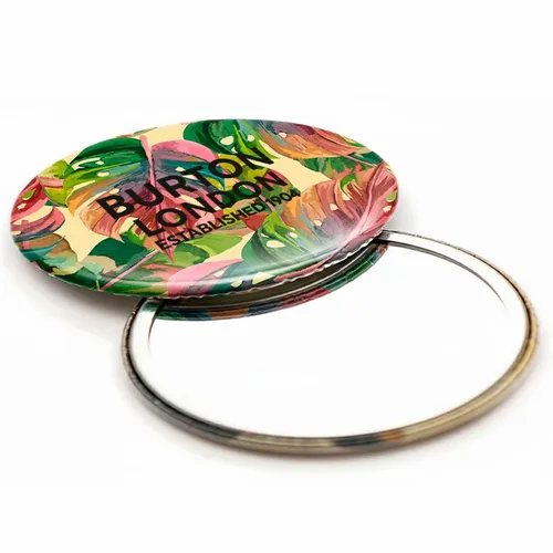 A custom compact mirror is a portable makeup mirror that can be personalized with logos, designs, photos, or text.