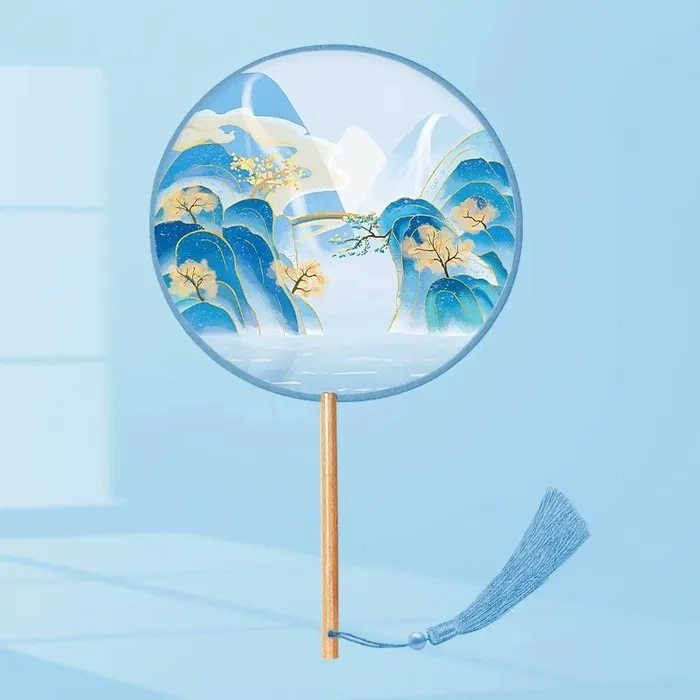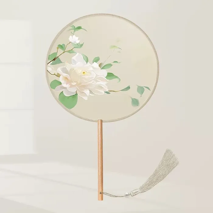 A custom silk hand fan is a beautifully crafted fan made from imitation silk with bamboo and wood handles, offering both durability and elegance. Available in three shapes—Round (8"), Petal (8"), and Haitang (8.5")—each fan is designed with a smooth, silky touch that blends modern simplicity with classical charm.