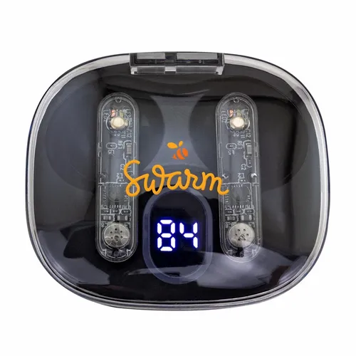 Soundwave Lumi wireless earbuds have a fun clear top case with decorative colorful light-up accents. Easily check the power level from its bright LED display. Each earbud has a clear side panel that displays the actual technology that delivers premium sounds for work, entertainment, and calls.