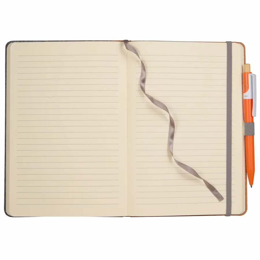 The 5.5 x 8.5 Recycled PET and Cork Bound Journal combines sustainable materials with a modern design, featuring a 50% recycled PET cover with a natural cork spine. Inside, it includes 80 sheets of recycled lined paper, a color-matching ribbon page marker, an elastic closure, and a convenient pen loop to keep your writing essentials organized. By choosing this journal, you’re making a positive impact on the environment through a partnership with 1% For The Planet, as a portion of each sale supports environmental nonprofits.