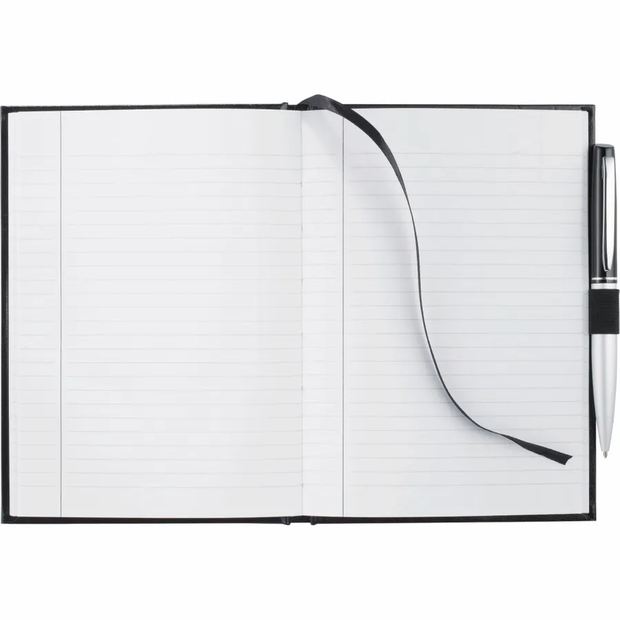 The 5 x 7 FSC Mix Executive Bound Journal features a hard cover and elastic pen loop (pen is not included). This custom Journal includes a ribbon page marker to save your place. The Executive Bound Journal offers 72 sheets of white lined FSC Mix paper.