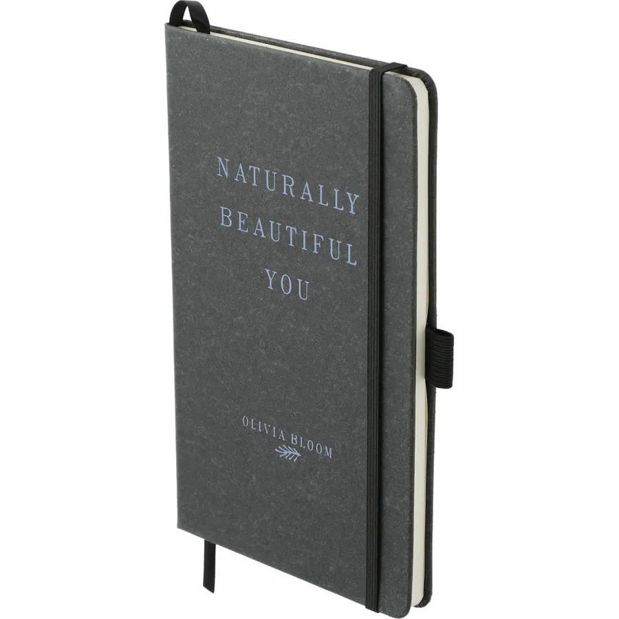 The 5.5 x 8.5 FSC Mix Recycled Leather Bound Journal features a recycled leather hard cover and 80 sheets of lined FSC Mix paper. This stylish, eco-friendly Journal features color-matching elastic closure, pen loop, and ribbon page marker. The Recycled Leather Bound Journal includes a back document pocket to store important notes. Through a partnership with 1% For The Planet, one percent of sales of this and all EcoSmart products will be donated to nonprofits dedicated to protecting the planet.