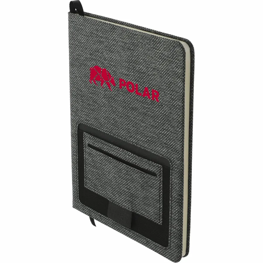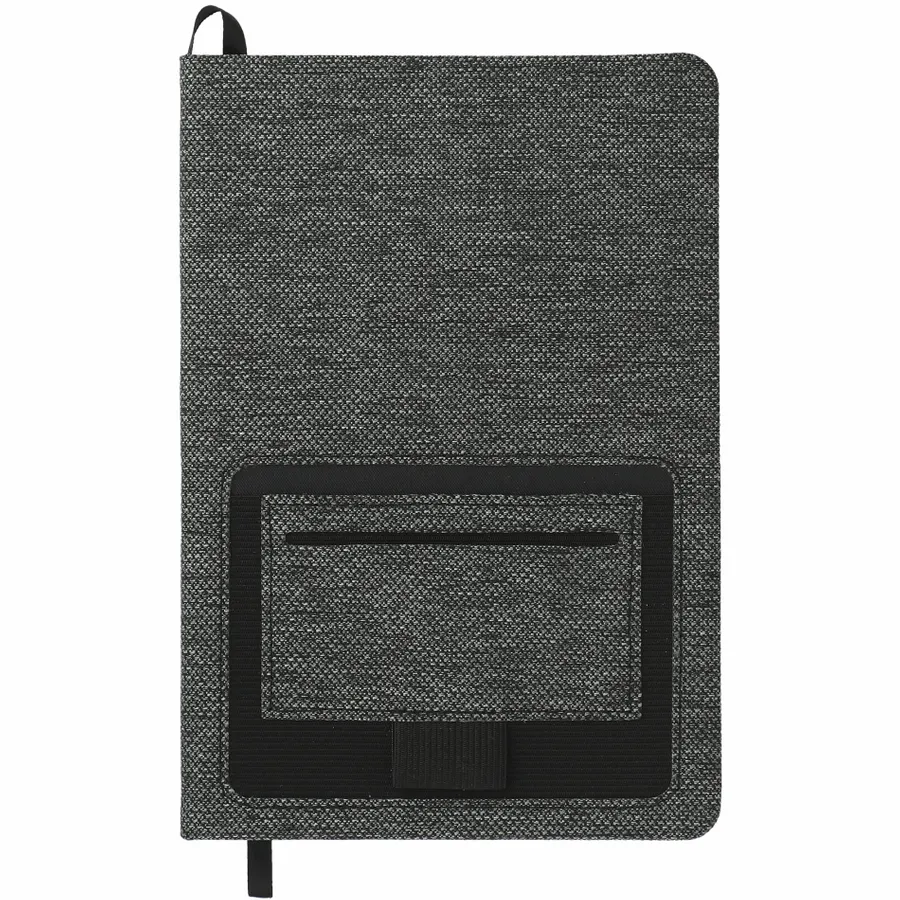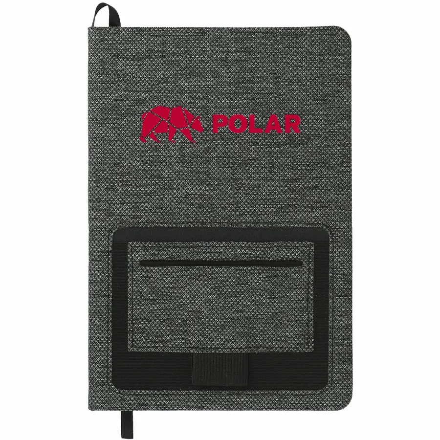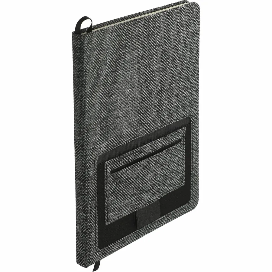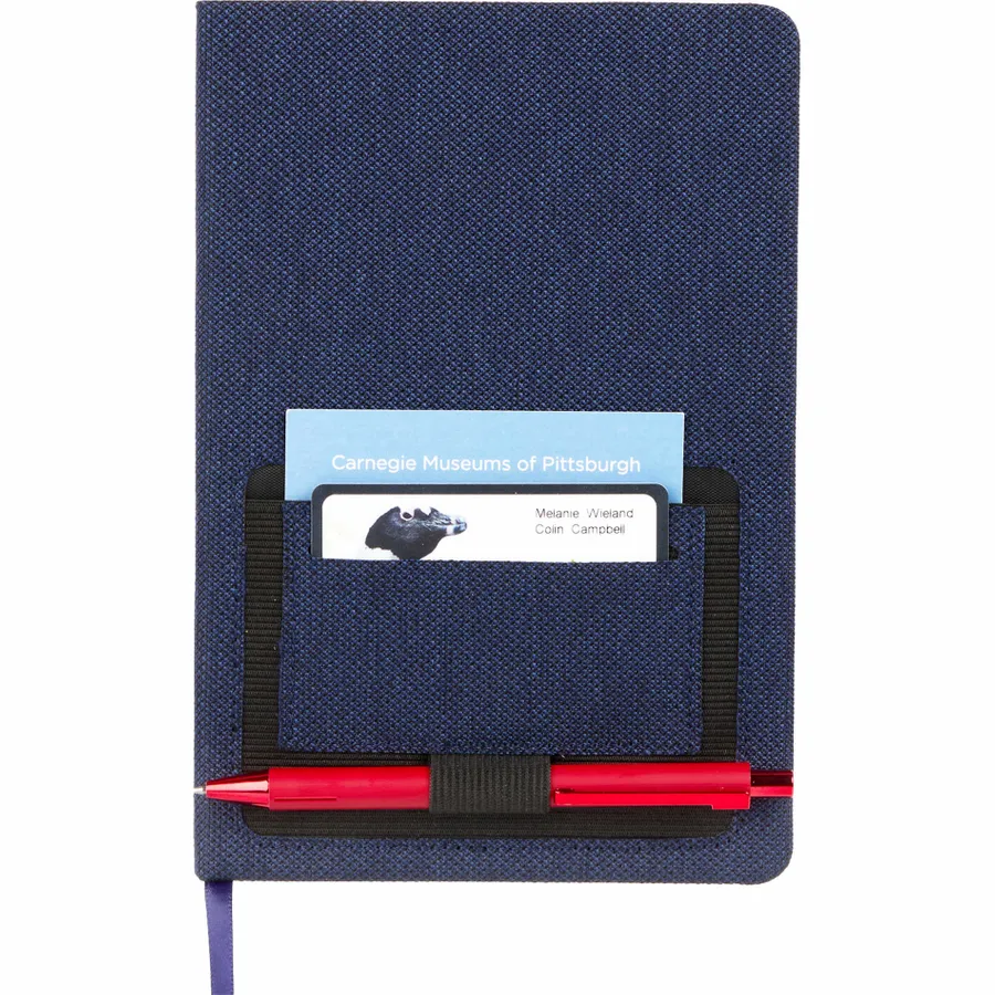 The 5.5” x 8.5” FSC Mix Vila RPET Bound Notebook features a hard, 100% Recycled PET cover with built in front pocket organization to hold a smartphone or business cards. Includes 80 sheets of cream lined FSC Mix paper, black ribbon page marker and black elastic pen loop. By choosing this notebook, you're making a positive impact on the environment, as one percent of sales are donated to environmental nonprofits through a partnership with 1% For The Planet.
