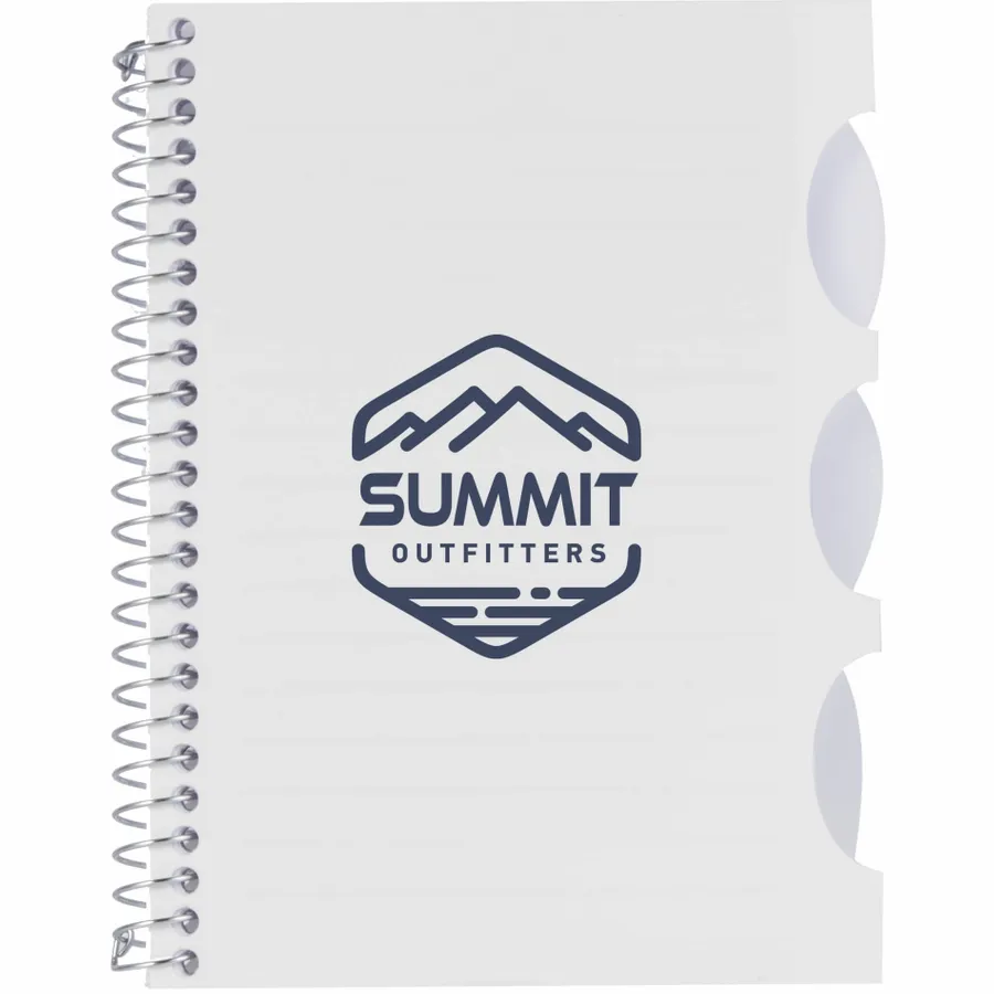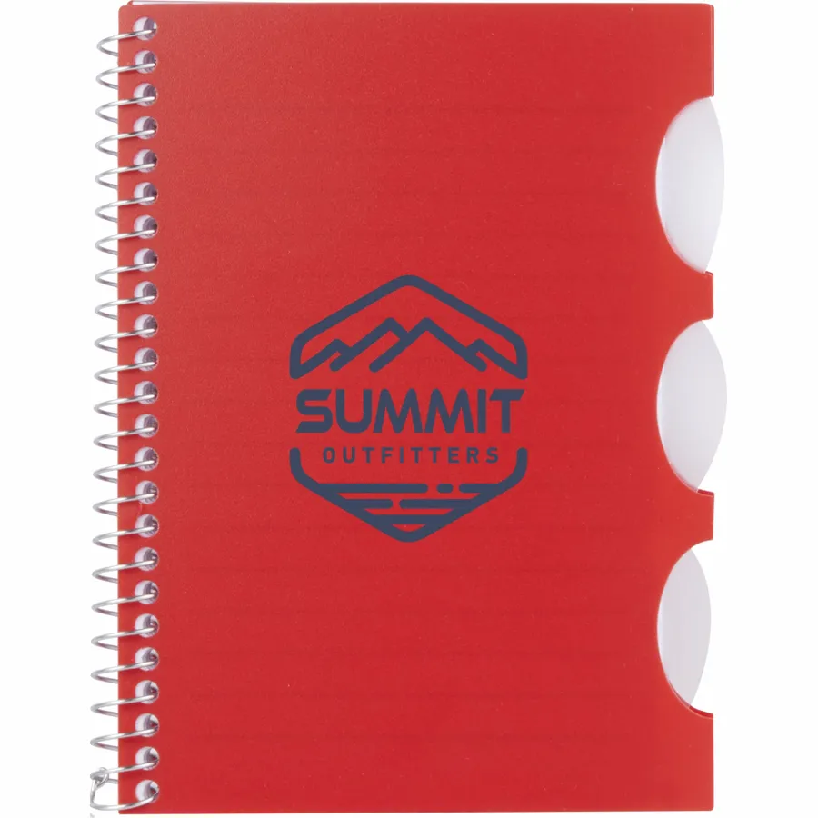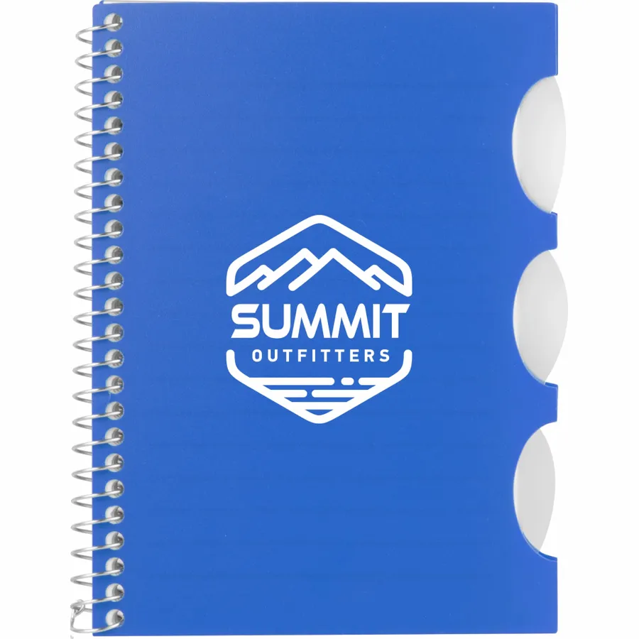 The 4” x 6” FSC Recycled Multitask Notebook features a 50% recycled PP hard cover with a die-cut design on the edge. The notebook includes tabs for organization and 70 sheets of FSC-certified recycled lined paper. By choosing this notebook, you're making a positive impact on the environment, as one percent of sales are donated to environmental nonprofits through a partnership with 1% For The Planet.