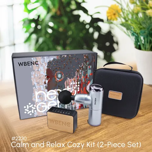 The Calm and Relax Cozy Kit comes with our Sound Machine and Massage Gun with Zip Case Packaging. It's a great way to give the gift of self-care and wellness to a team that works hard throughout the year. Includes: #2085Z Massage Gun With Zip Case Packaging and #2061 Sound Machine