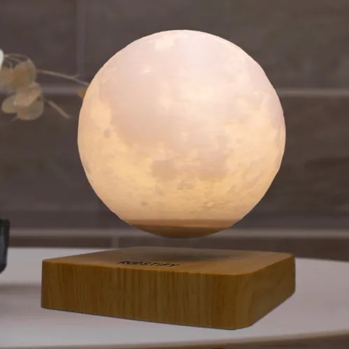 A fun magnetically levitating light-up moon display that is surprising, eye-catching, and fun. It has three light modes that provide a soft and gentle illuminated accent that is great for any room. It is easily operated with a touch sensor button on the top of the base.