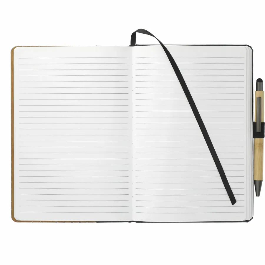 This set includes the (2800-78) Bamboo Bound Journal and (1066-50) Bamboo Quick-Dry Gel Ballpoint Stylus. It features a unique bamboo cover with recycled leather accent. 80 sheets of recycled, white lined paper. Includes elastic closure, ribbon page marker and elastic pen loop. Through a partnership with 1% For The Planet, one percent of sales of this and all EcoSmart products will be donated to nonprofits dedicated to protecting the planet. Due to the nature of the material, there may be color variances.