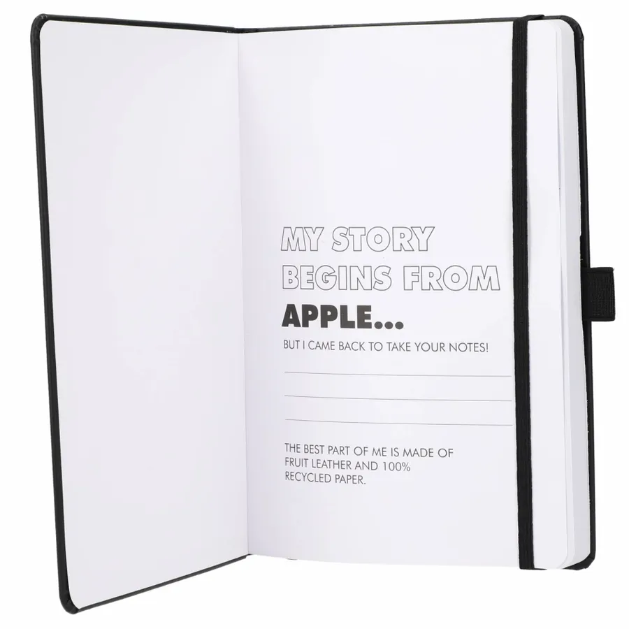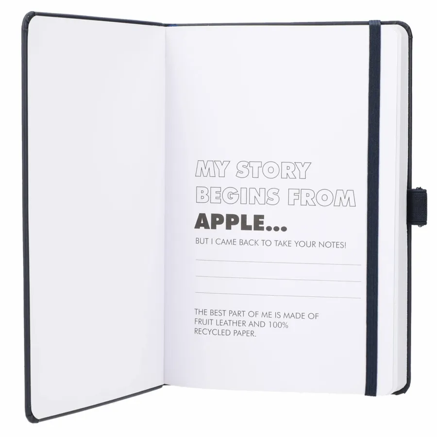 The 5.5” x 8.5” FSC Mix Mela Bound Journal features a uniquely crafted hard cover with 39% of apple components. Color-matching elastic closure, pen loop and ribbon page marker. Includes 80 sheets of FSC Mix white lined recycled paper and back document pocket. Through a partnership with 1% For The Planet, one percent of sales of all EcoSmart products will be donated to environmental nonprofits.