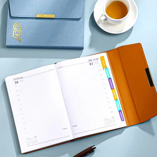 A classic planner with a durable PU leather cover, perfect for professional use and daily organization.Size: 6 in x 8.2 inCover: PU leatherPages: Writing paper (70g)Colors: Black, Dark Blue, Red, Light Blue, BrownCustomization: Foil stamped, full-color printingMaximum Printing Area: 4" x 4"Perfect for professionals seeking a stylish and high-quality planner for everyday use.