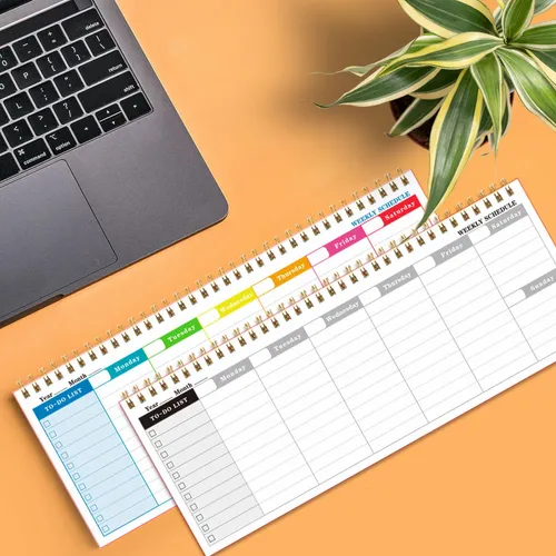 A sleek, flexible planner perfect for weekly planning anytime, featuring two types of inner pages and a durable cover for everyday use.Size: 4.7 in x 12 inCover: Double adhesive paperPages: 60 pages (80g writing paper)Layout: Two types of inner pages, color printingColors: Black, Purple, Blue, Pink, GreenCustomization: Supports full-color logo, UV printing, foil printingGreat for staying organized with a stylish, customizable planner that works year-round.
