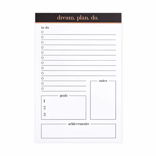 A versatile notepad designed for weekly planning, perfect for study schedules, work tasks, or personal goals.Size: 6 in x 9 inMaterial: 100gsm writing paperPages: 50 pagesLayout: Full-color printing to the edgePrinting Method: UV PrintingFeatures: Thick, smooth paper for effortless writingColor: WhiteIdeal for anyone looking to stay organized with a simple, practical, and stylish weekly planner.