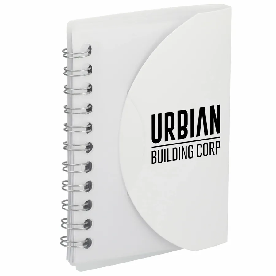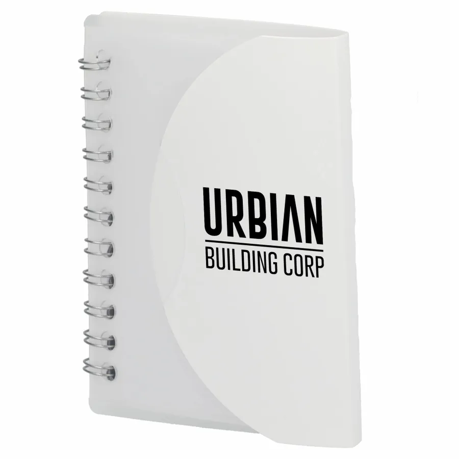 Experience eco-friendly note-taking with the compact 3.4” x 4.5” FSC Recycled Post Spiral Notebook. Its transparent cover is thoughtfully crafted from recycled PP material, and inside, you'll discover 60 pages of FSC-Certified recycled blank paper, providing the perfect canvas for your ideas. With this environmentally conscious choice, you can make notes, sketches, and plans while contributing to a sustainable future.
