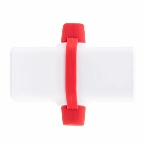 A portable 1800 mAh power bank with a Type-C input/output connector and Lightning output connector. Each connector is covered by a silicone band with caps that helps protect them when not in use.