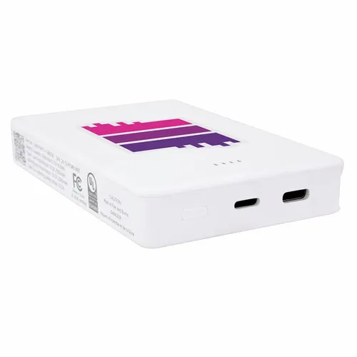 Keep business teams powered up with this officially UL-listed 5,000 mAh power bank that comes with a built-in storage section for a short Type-C to Lightning cable. The attached cable works with Android and Apple phones, PLUS, recharges the power bank. Having a cable always nearby will help keep teams efficient while speeding through a productive day.The innovative ONE CABLE™ solution charges old iPhones (14 and earlier models), new iPhones (15 and newer with a Type-C port), and all Android pho