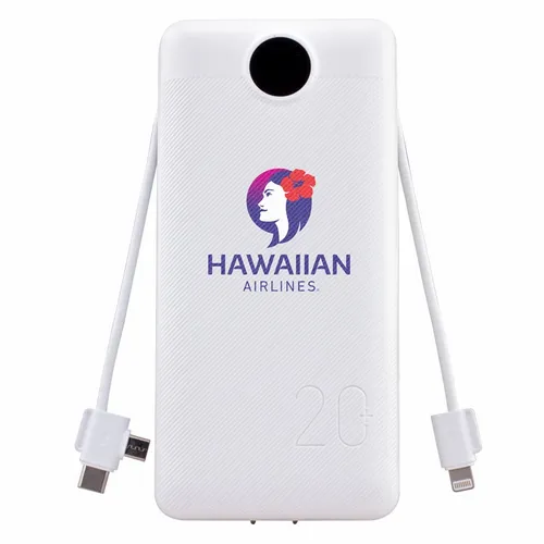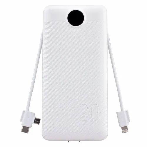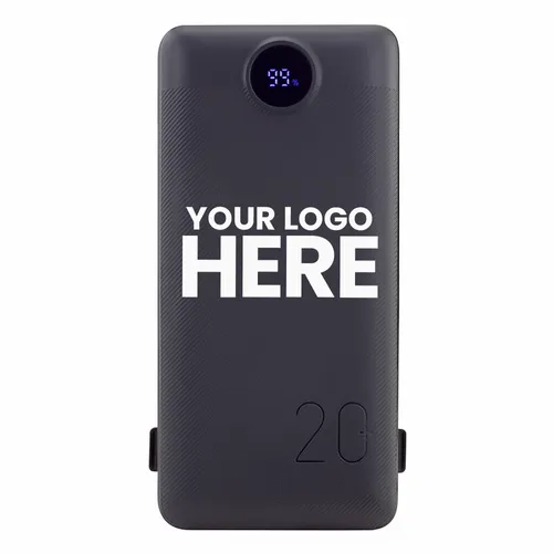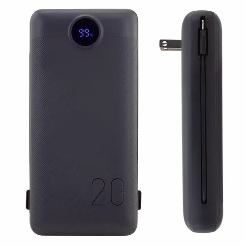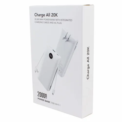 - Charge All 20K Power Bank with Integrated Charging Cables and AC Plugs