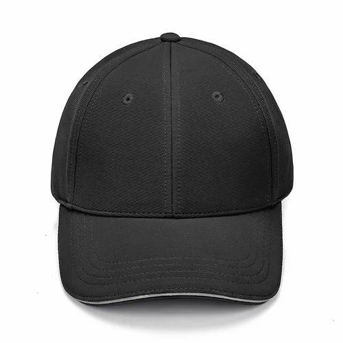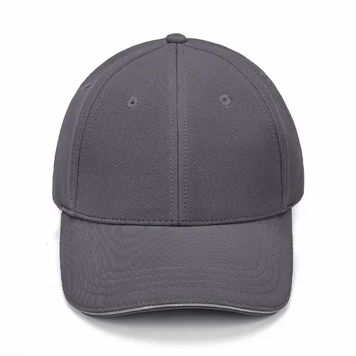 The Reflective Baseball Cap is Made of 100% cotton twill with a gray reflective sandwich trim in a pre-curved sandwich peak. It's structured with 6 panels and embroidered eyelets, a sweat band inside, and adjustable closure which allows one size to fit most people. Great for both indoor and outdoor activities.