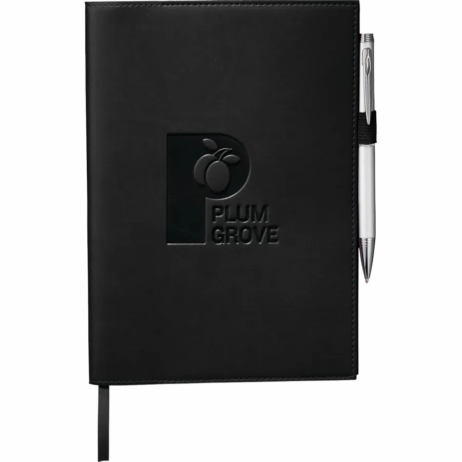 The 6 x 8.5 FSC Mix Pedova™ Refillable Journal comes with 80 sheets of white lined FSC Mix paper and features a unique refillable design, with extra paper (9091-98RF) available to order separately. Its cover is constructed from luxurious Italian UltraHyde materials, letting you take notes and record ideas with style. This convenient notebook has a built-in ribbon page marker to hold your place, plus a stretchy elastic pen loop. Pen is not included.
