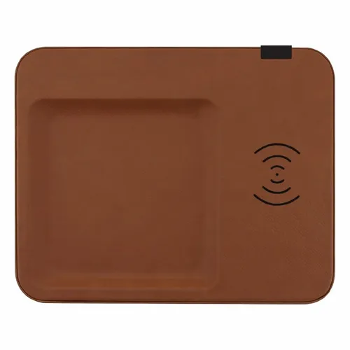 This leatherette decor piece features both a key caddy and an integrated wireless charging mat. An excellent piece for office or home use. Decorate with full color printing or laser engraving. Laser engrave on black to show your logo in silver Laser engrave on brown to show your logo in black Wireless Output: 5V 1A, 5W (purchased before 4/20/2022) | 5V 2A, 10W (purchased after 4/20/2022)