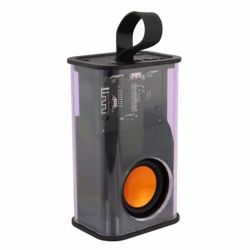 A perfect gift for tech enthusiasts who appreciate the inner workings of electronics. The clear outer case allows a user to see the speaker's circuitry inside the case while listening to their favorite tunes. The other side has a light panel with multiple fun light pattern sequence options. Specifications: Charging Voltage of Speaker: 5V/1A Maximum Audio Power: 5W Response Frequency: 70Hz-18KHz Wireless Distance: 10M Battery Capacity: 500 mAh (3.7V)